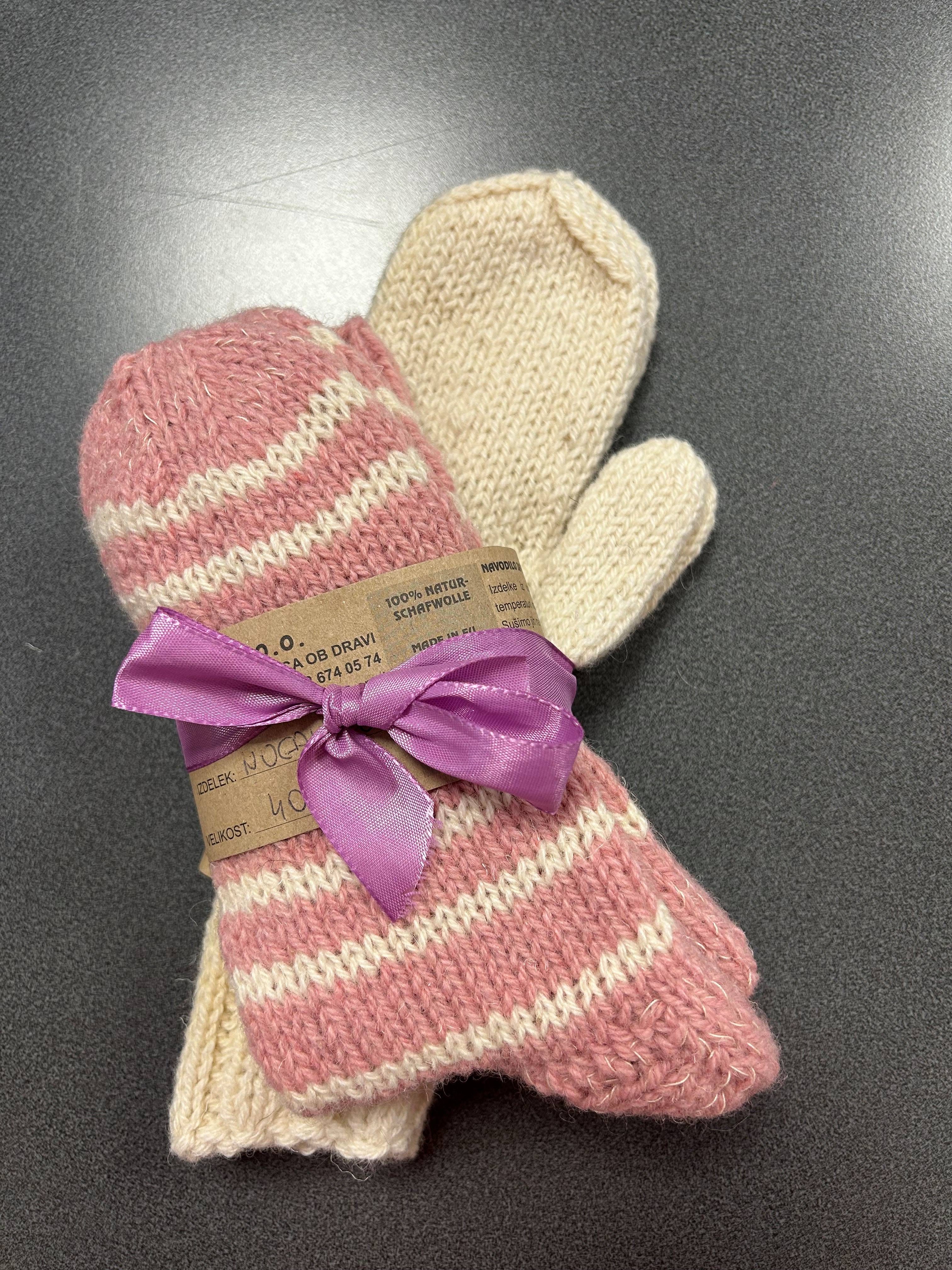 DARILNI KOMPLET – ROČNO PLETENE ROKAVICE + ROČNO PLETENE NOGAVICE